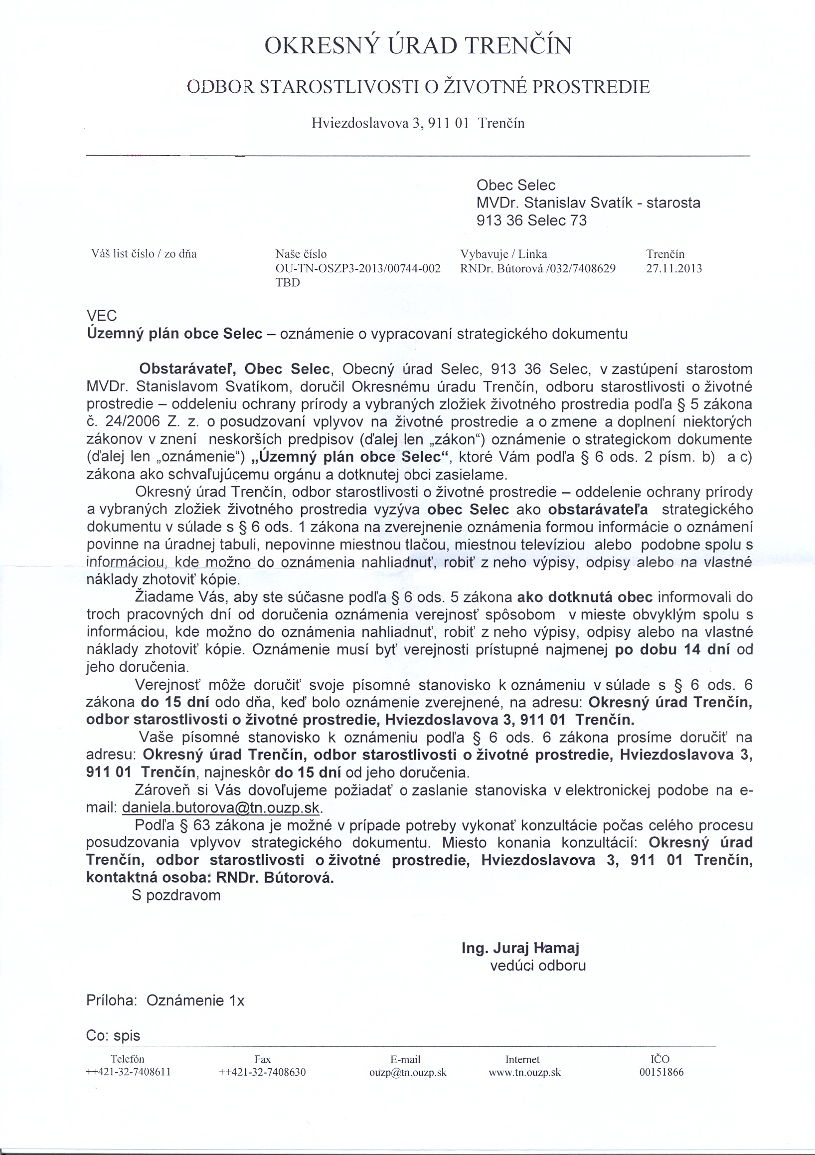 Oznámenie OÚ TN - OSZP